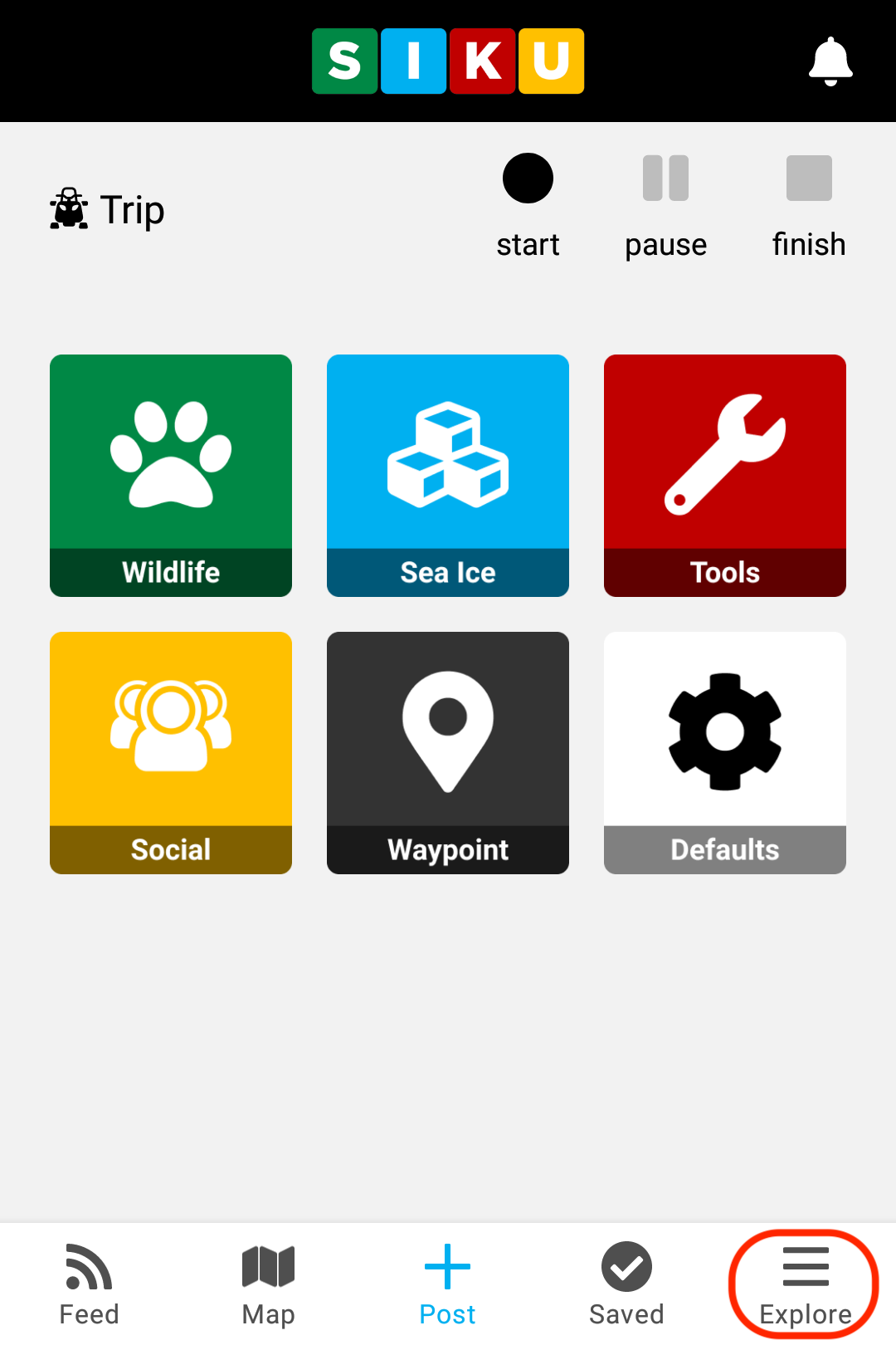 1. Select the [fa i=”bars”] Explore icon at the bottom right corner of the screen.