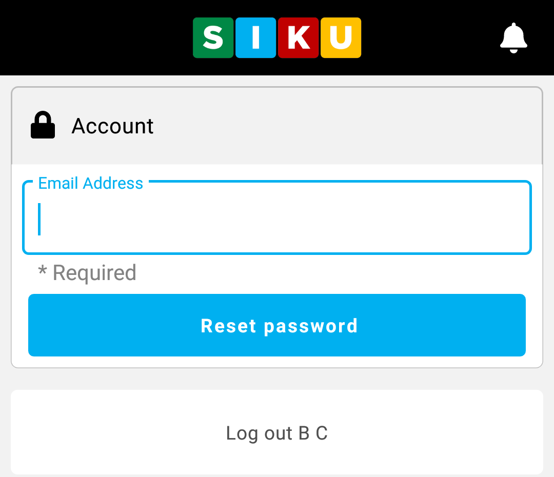 3. Type the email address that is linked to your SIKU account in the email field. It may already be there. Once your email address is in the field, click the blue Reset Password button.