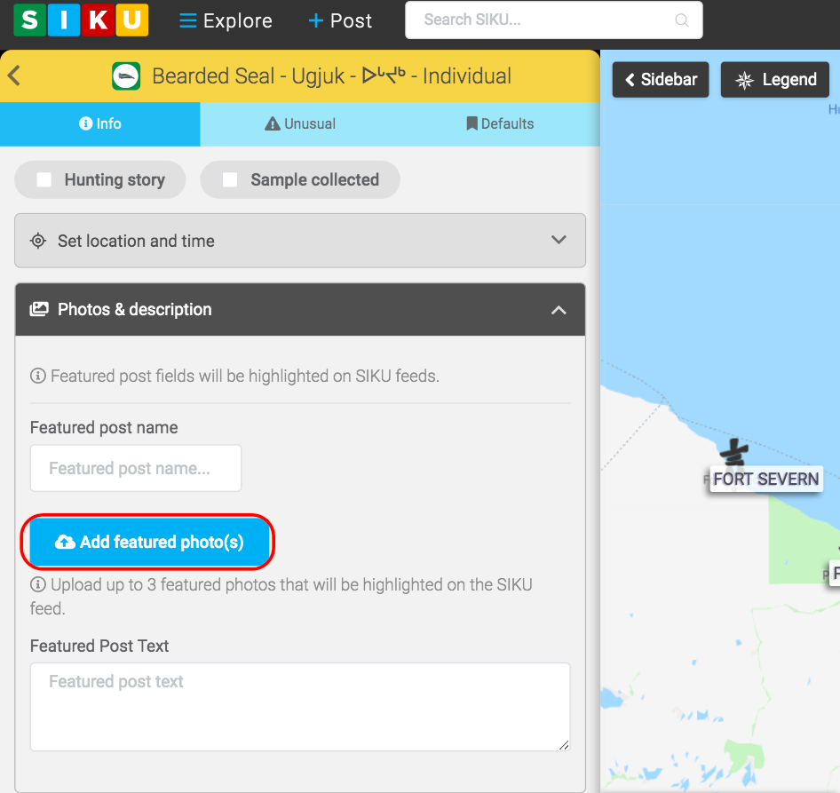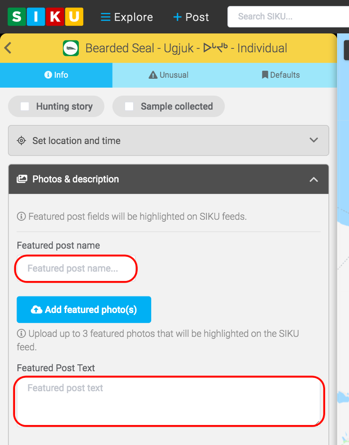 3.  Create a name for the post using the “featured post name” box. You can add text to further explain your post and pictures using the “featured post text” box.