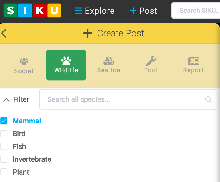 Filtering profiles makes it easier to find a specific profile. For example, when browsing wildlife profiles, you can filter to show only mammals.