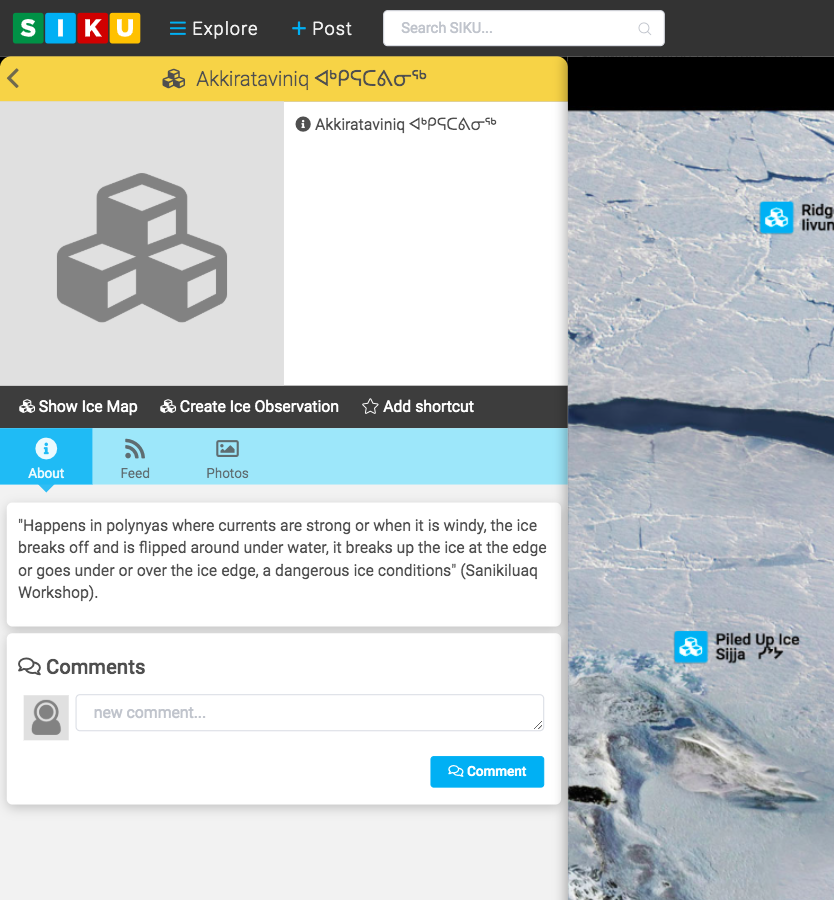 - For example, clicking on Akkirataviniq allows you to access information about this ice type, create an observation, and more.
