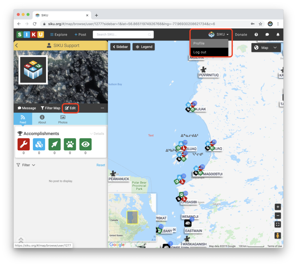 - Click on your profile name/photo in the top right of the main menu bar to view your user profile.