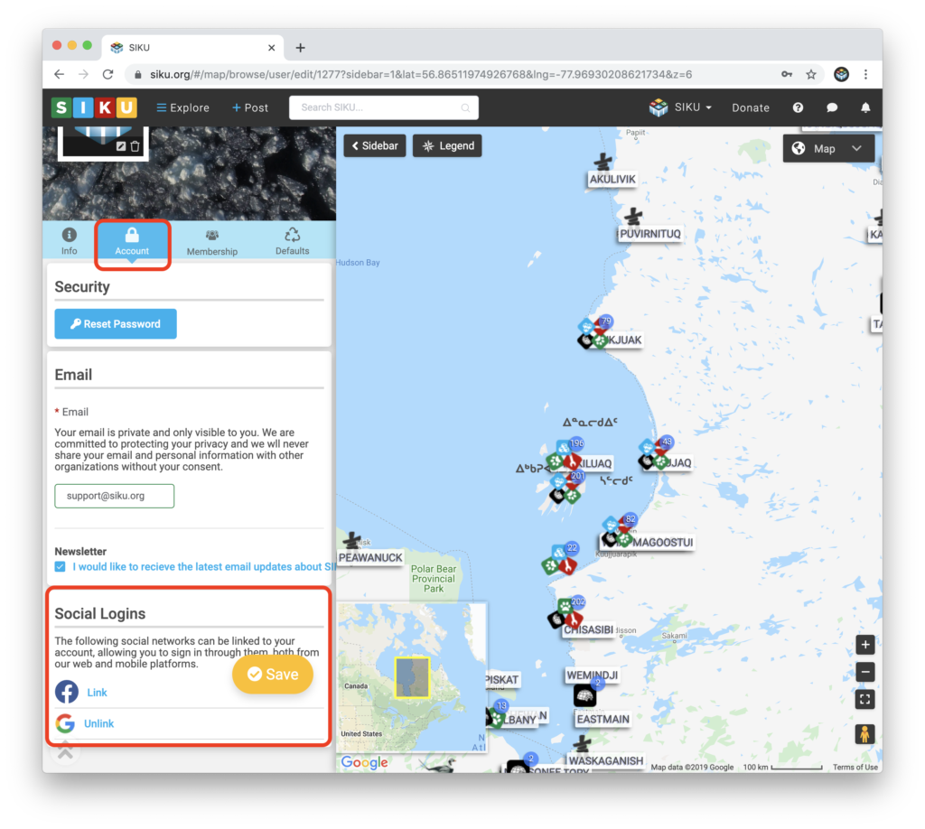 Once an account has been created on SIKU, it can be linked to one or more social media accounts (Facebook or Google) for the purpose of sign in.
