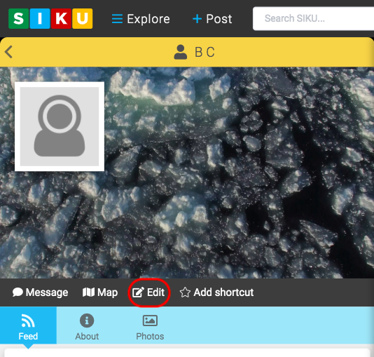 - The left hand sidebar will now display your profile. If the sidebar does not appear then click the sidebar icon on the top left corner of the map. From here, click edit to edit your profile.